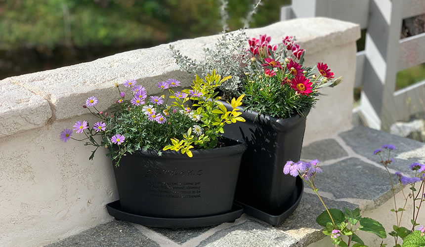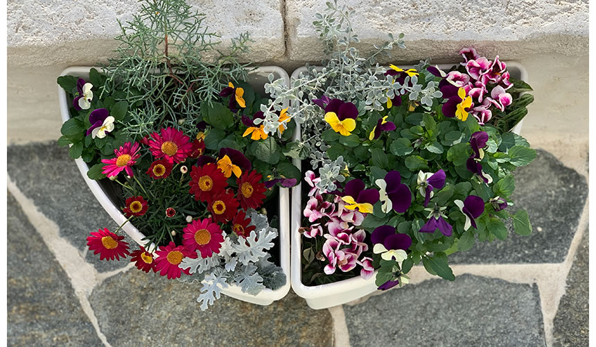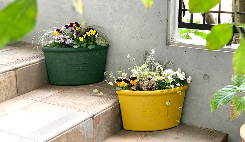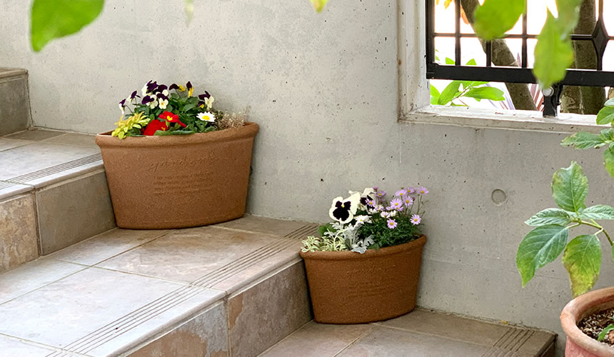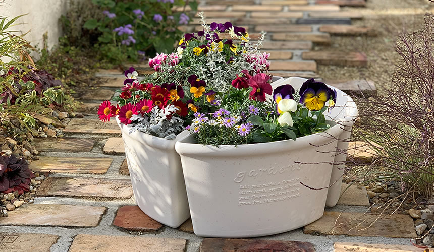 Placing two corner pots together to make a semicircle shape to enjoy distinctive gardening.
