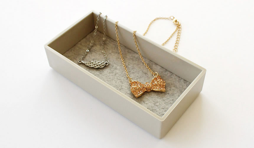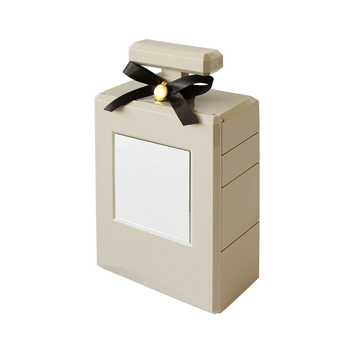 This attractive jewelry box has four tiers and is shaped like a perfume bottle, making it a wonderful place to store and display jewelry and other small items.
