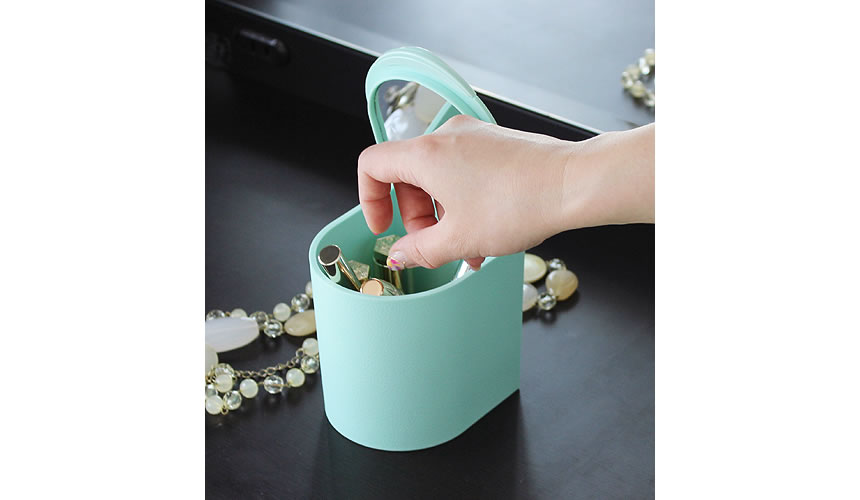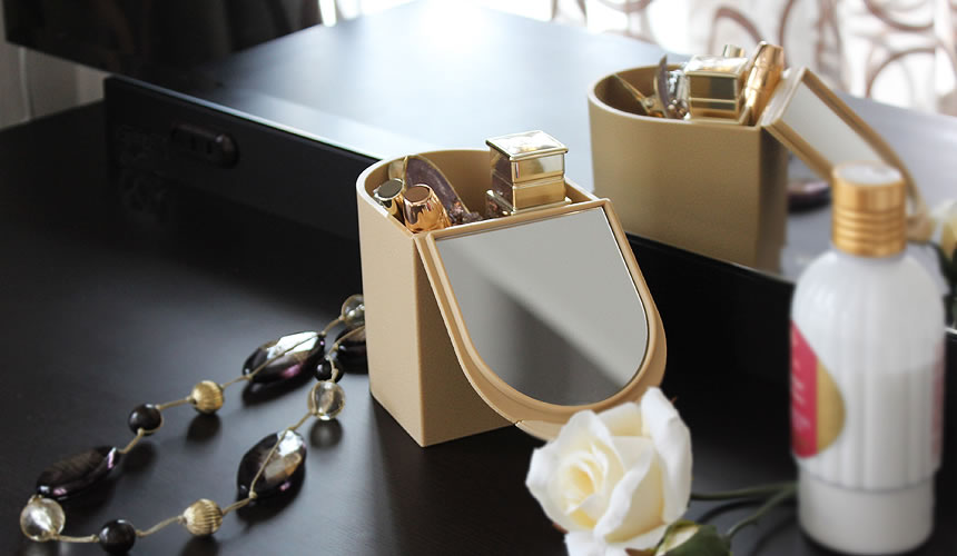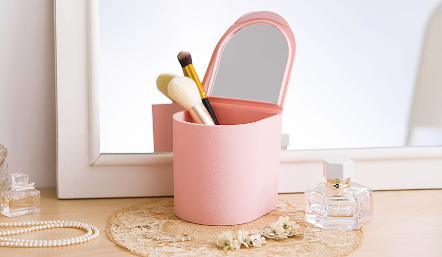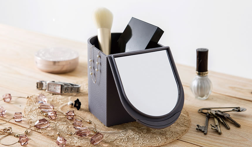 Lovely cosmetic case with a magnifying mirror “propetit”. It will keep cosmetics organized and clean. Made from soft material so it won’t scratch your desk.