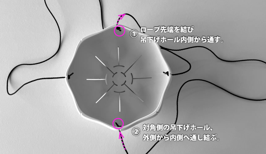 Tie the end of the rope and thread it from the inside of the hanging hole.
