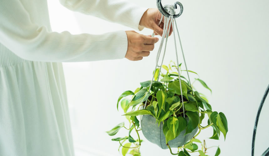 Simply thread the rope to create a soothing interior green that floats in your space.