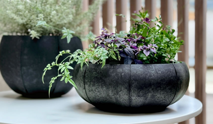 Its wide, low-centre-of-gravity form is perfect for container gardens and similar arrangements. It beautifully complements the natural beauty of plants. (Pictured: size L)