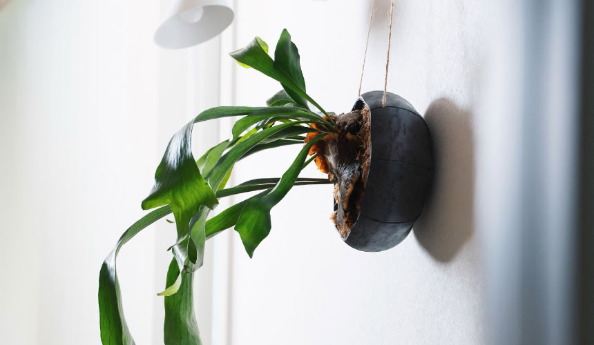 ビカクシダを入れて壁にかけるだけで、際立つ上質なアートグリーンに。