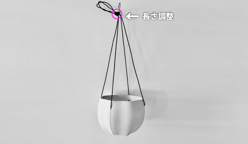 スリット内の吊り下げホールに通すことで、簡単に縦型、横型の吊り鉢としてお楽しみ頂けます。
